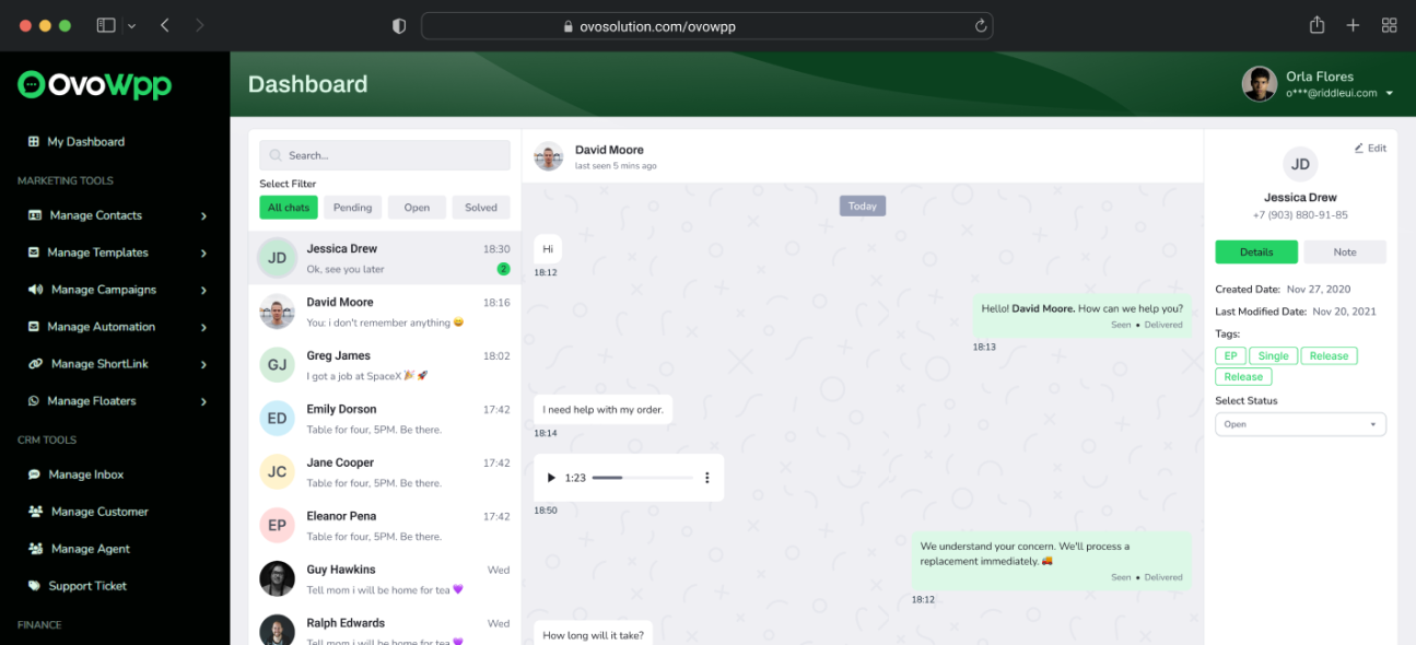 OvoWpp es una herramienta completa de CRM y marketing de WhatsApp multiplataforma.